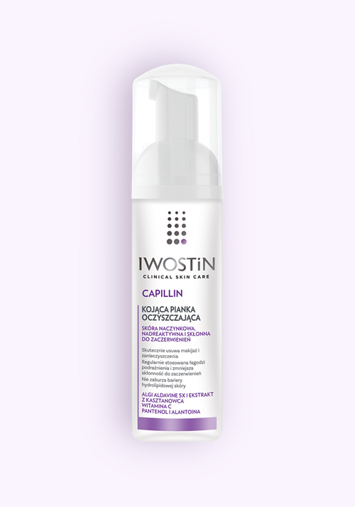 Skóra naczynkowa jest szczególnie wrażliwa i narażona na działanie czynników środowiskowych, przez co oznaki starzenia są bardziej widoczne. Krem przeciwzmarszczkowy z linii Iwostin Capillin ma działanie antyoksydacyjne i nawilżające. Zmniejsza głębokość i widoczność zmarszczek oraz ujędrnia skórę. Kompleks AquaJuve Q MIX 5% chroni przed nadmierną utratą wody z naskórka, działając jako „molekularna gąbka”,