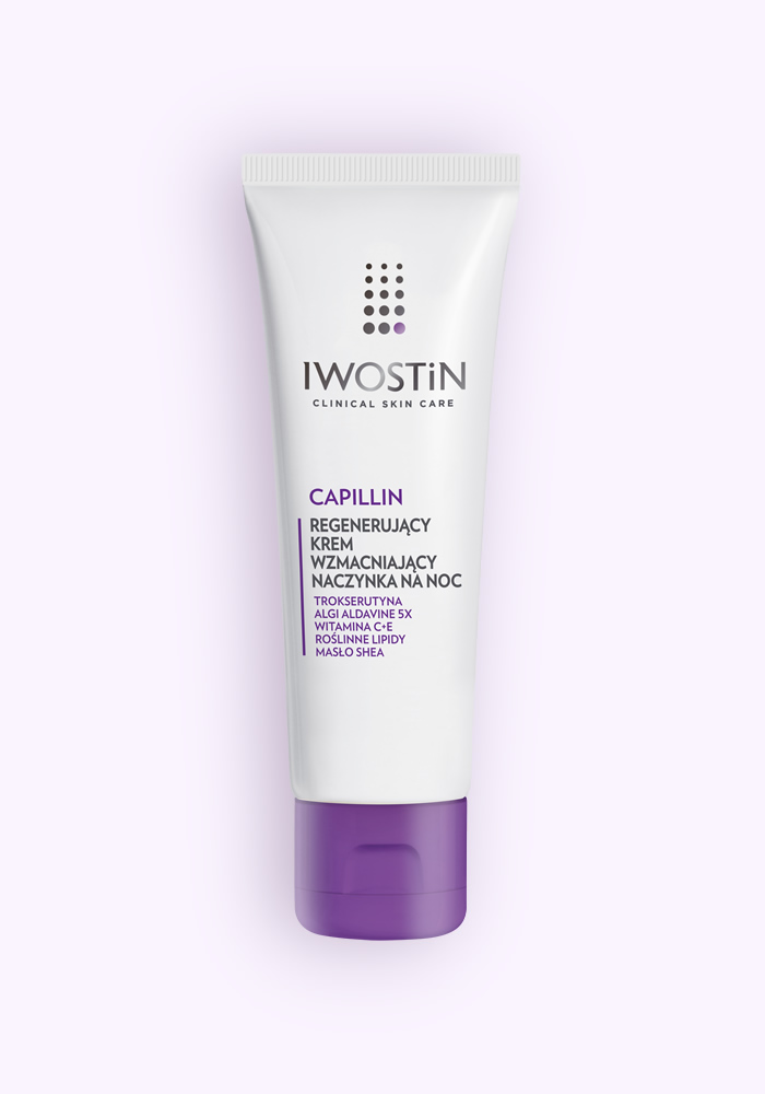 IWOSTIN Capillin Regenerujący krem wzmacniający na noc do skóry naczynkowej, nadreaktywnej i skłonnej do zaczerwienień został oparty na innowacyjnej formule składników aktywnych, które kompleksowo dbają o kondycję skóry zapewniając poprawię jej nawilżenia oraz elastyczności.